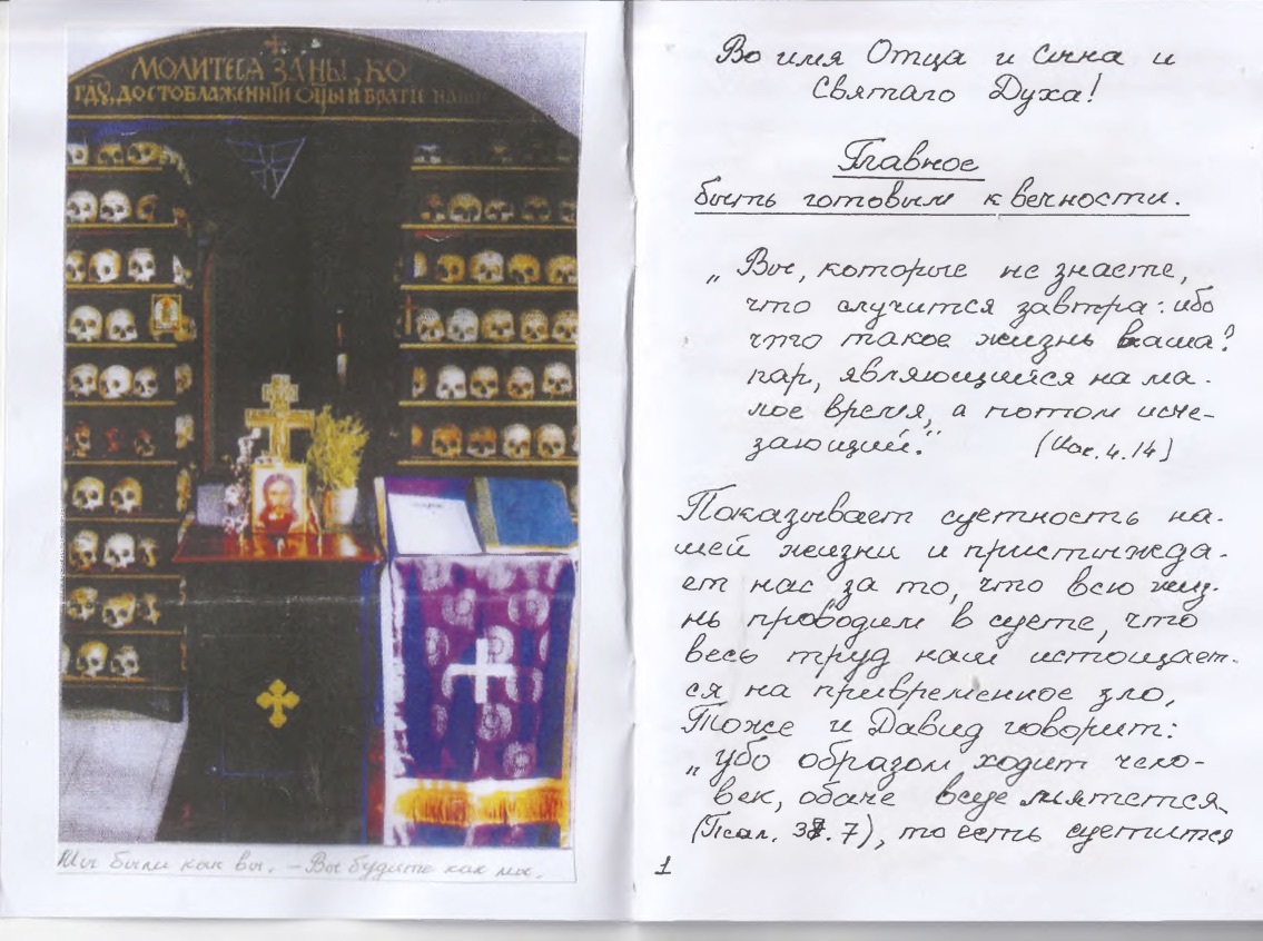 В книге открывается смысл жизни человека, который заключается в жизни на Небе, для которого он и создан. В данном труде также раскрывается способ достижения Царства Христова, который основан на уподоблению Отцу. Эту книгу можно назвать прологом ко всему циклу опубликованных на сайте работ, но что важнее, прологом ко всей жизни христианской, дающем цель, смысл, надежду.