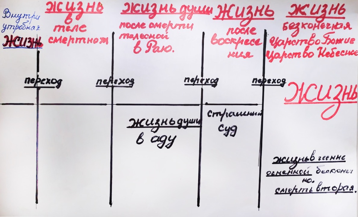 "Страшный суд" готовит нас предстать перед глазами Отца небесного, исполненных любовью, и выдержать этот взор. Для чего нужно помнить о том, что люди будут осуждаемы не за грехи, а за отсутствие добродетелей, потому что именно это делает нас подобными диаволу, главное свойство которого - это нежелание делать дел любви, добра и правды.